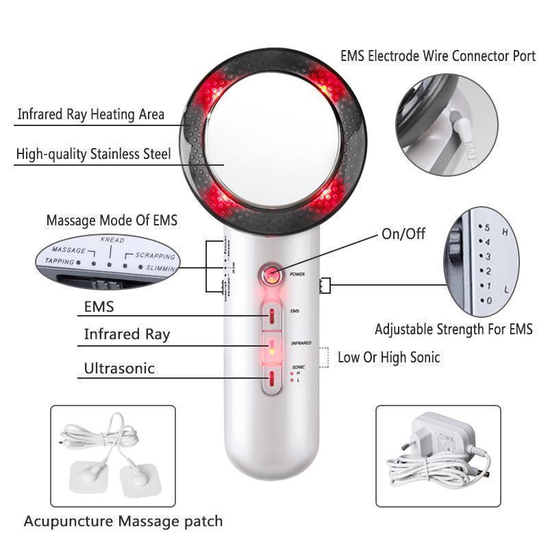 Kolm-ühes vibratsiooni iluseade & Body Massageril on järgmised toote omadused: