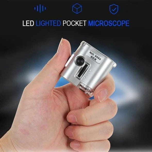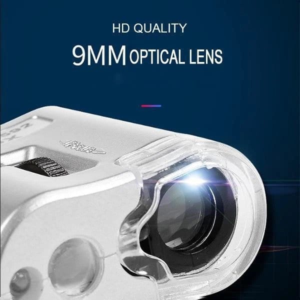 Mintiml LED-valgustusega taskumikroskoop
