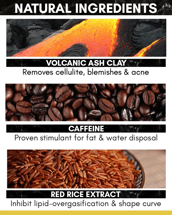 - Koostis: vulkaaniline savi, kofeiin, glütseriin, oliiviõli